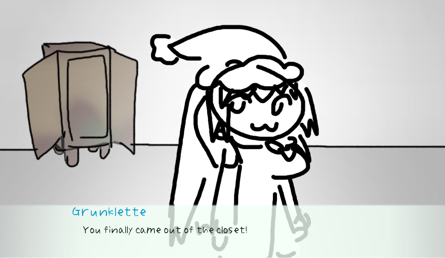 Screenshots from the early stages of development for Christmas in the Closet. I am putting these here as I may have gotten rid of the original placeholder sprites. Dated December 20th.